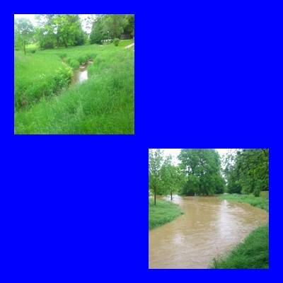 Krumbächle bei der Südstraße vor und während eines Hochwassers